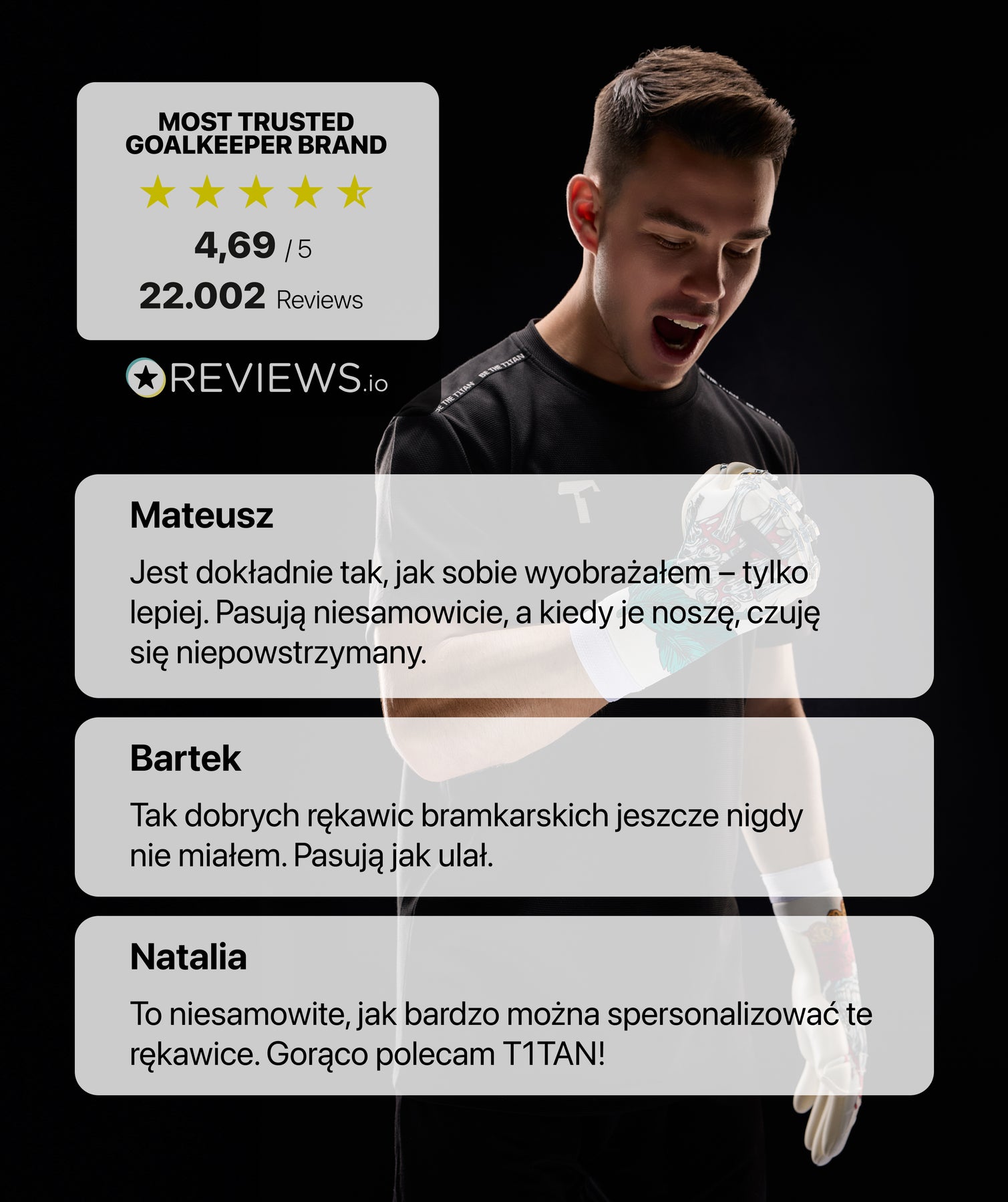 Profesjonaliści zazwyczaj używają naszych rękawic bramkarskich tylko przez kilka tygodni, ponieważ wymagania na tym poziomie są bardzo wysokie. W T1TAN otrzymasz taką samą jakość, jak profesjonaliści.