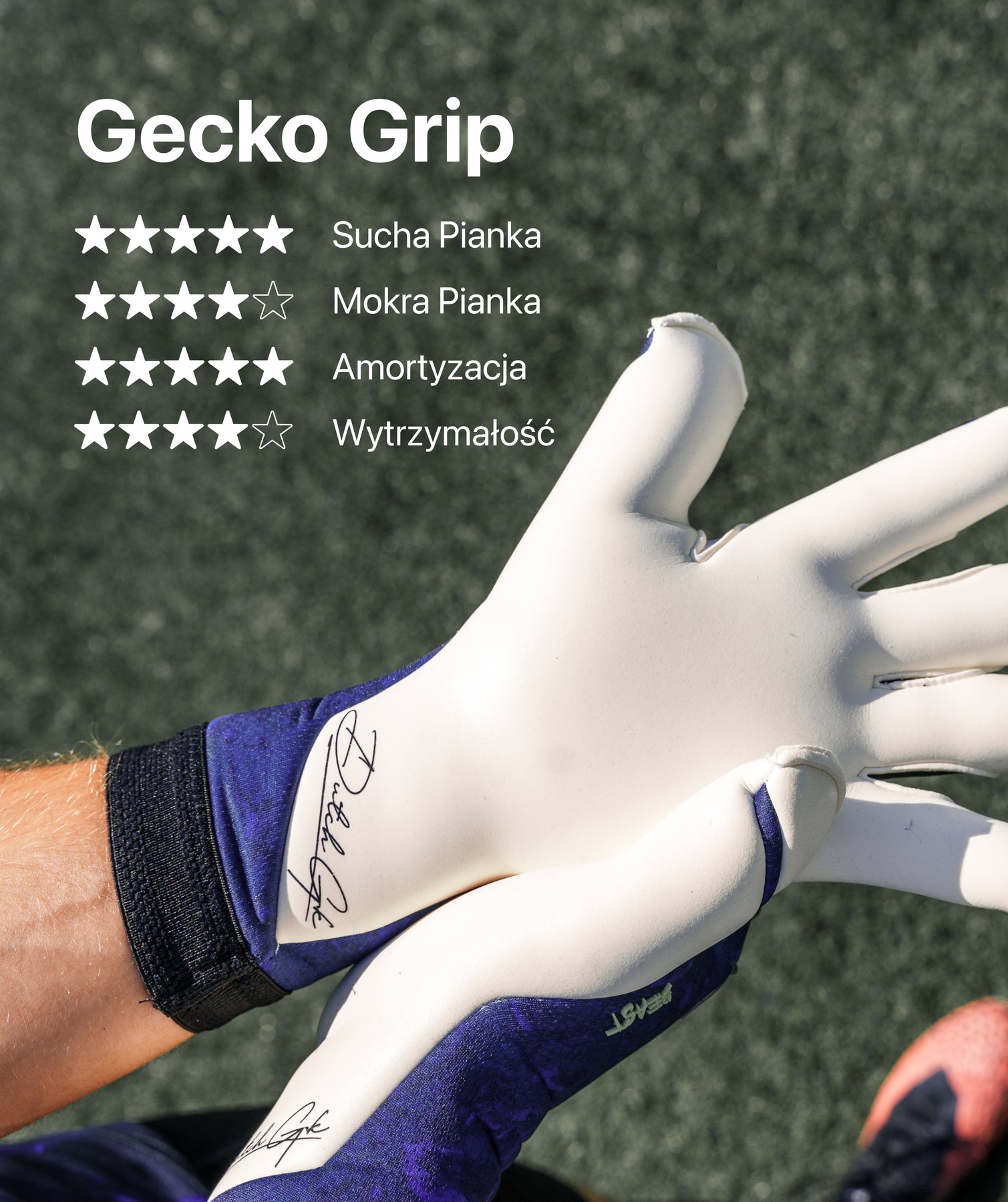 Profesjonalne rękawice bramkarskie do gry na trawie – opracowane we współpracy z influencerem @thedutchgoalkeeper.