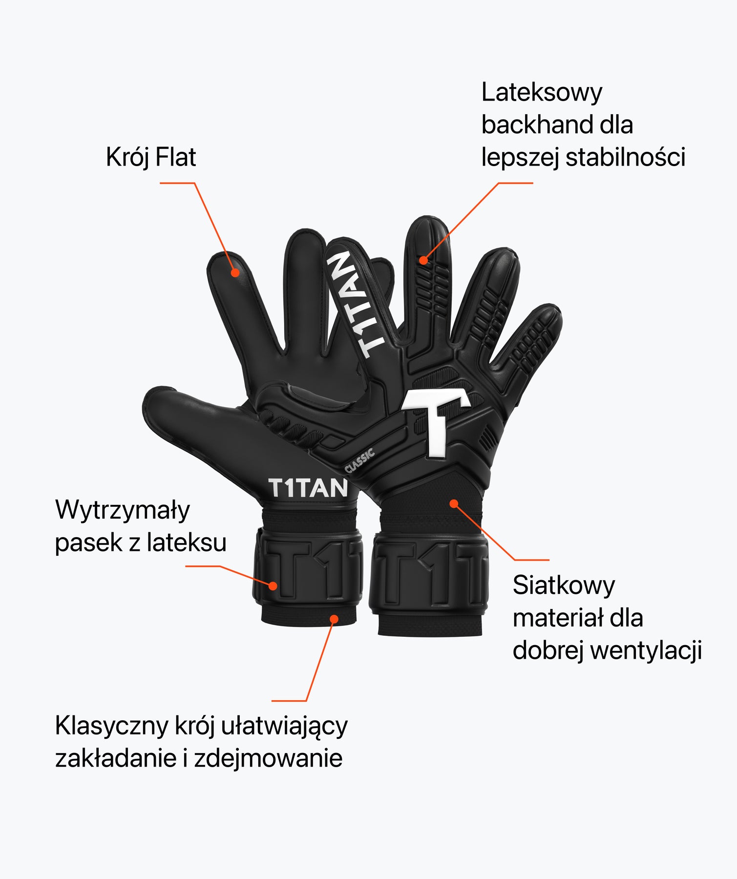 Zainspirowane naszymi najlepszymi profesjonalnymi modelami: CLASSIC 1.0 BLACK-OUT oferuje świetną przyczepność i wysoką odporność na ścieranie. To sprawia, że jest to idealna rękawica T1TAN dla ambitnych początkujących bramkarzy i wymagających juniorów.