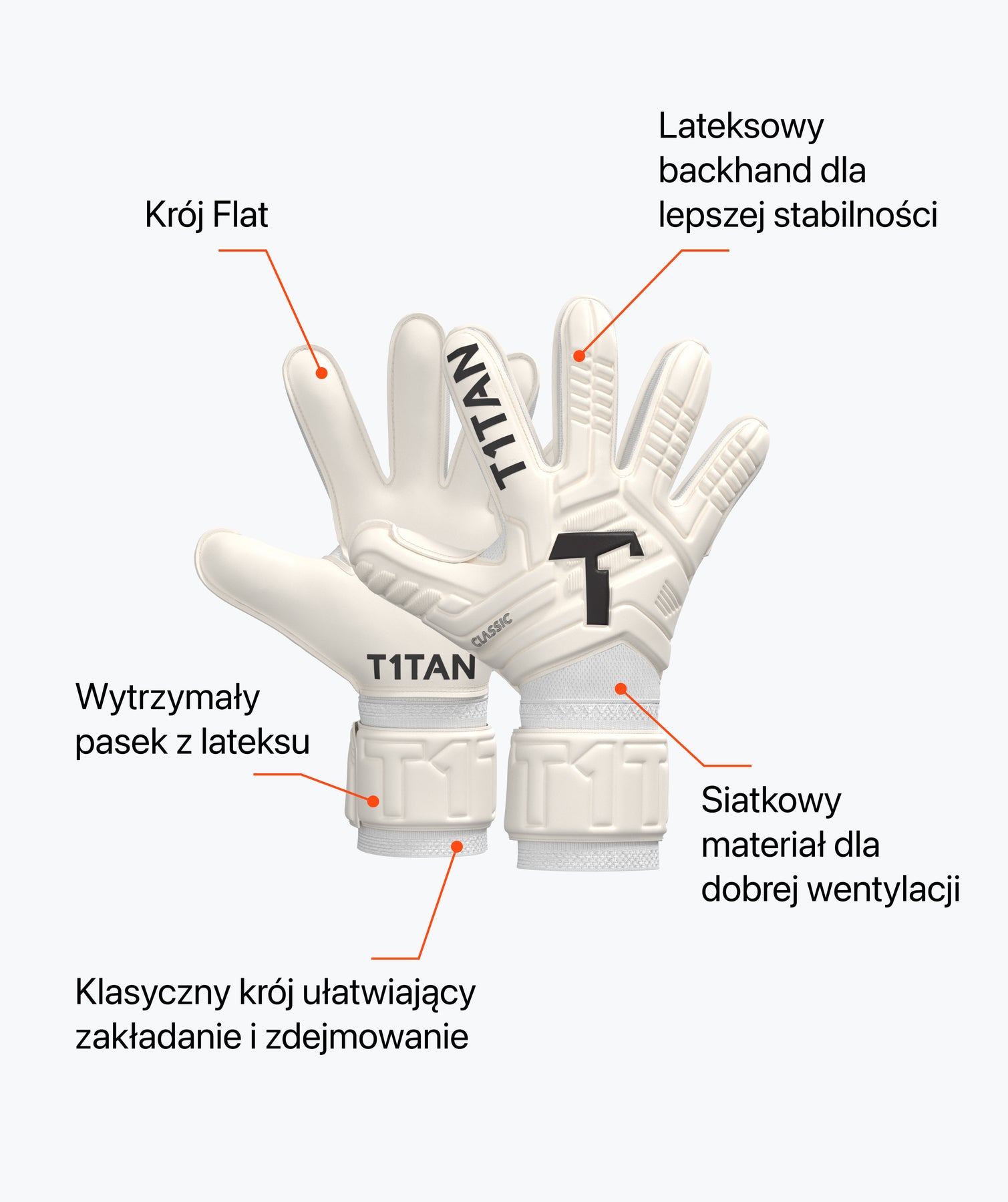 Zainspirowane naszymi najlepszymi profesjonalnymi modelami: CLASSIC 1.0 WHITE-OUT oferuje świetną przyczepność i wysoką odporność na ścieranie. To sprawia, że jest to idealna rękawica T1TAN dla ambitnych początkujących bramkarzy i wymagających juniorów.