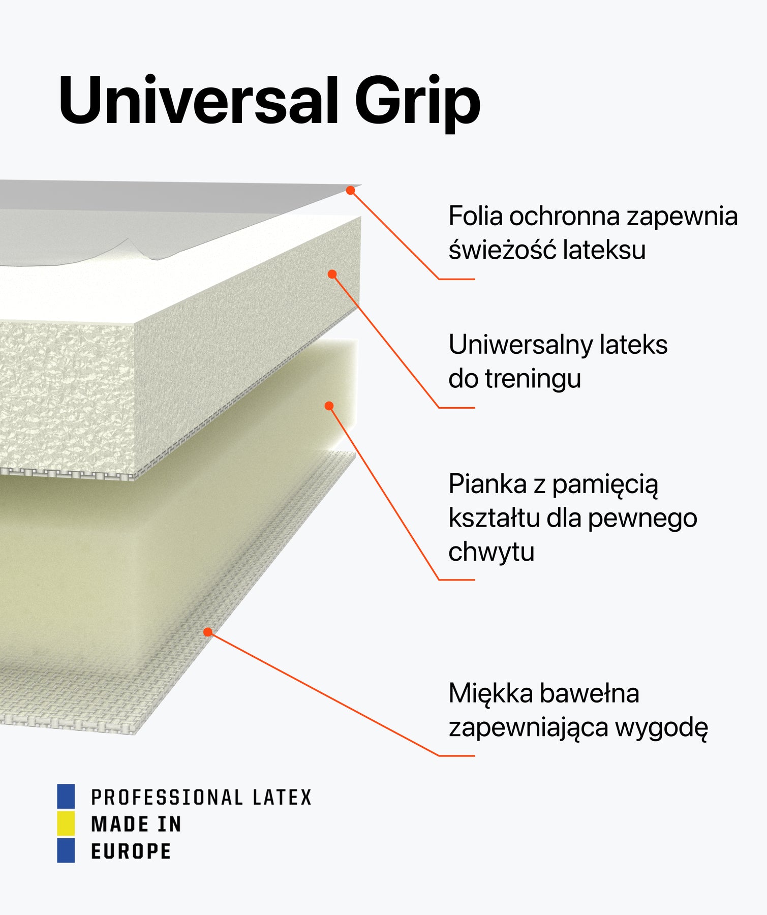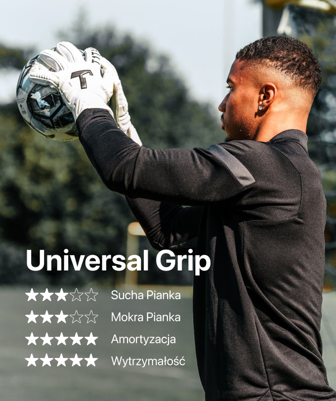 Idealna przyczepność w każdej sytuacji: Wysokowydajna pianka 3 mm + 5 mm Universal Grip zapewnia pewny chwyt i doskonałą kontrolę nad piłką. -