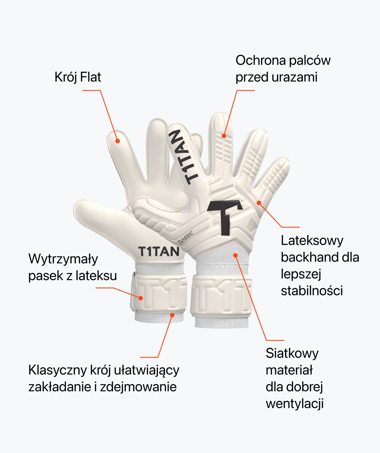 Zainspirowane naszymi najlepszymi profesjonalnymi modelami: CLASSIC 1.0 WHITE-OUT oferuje świetną przyczepność i wysoką odporność na ścieranie. To sprawia, że jest to idealna rękawica T1TAN dla ambitnych początkujących bramkarzy i wymagających juniorów.